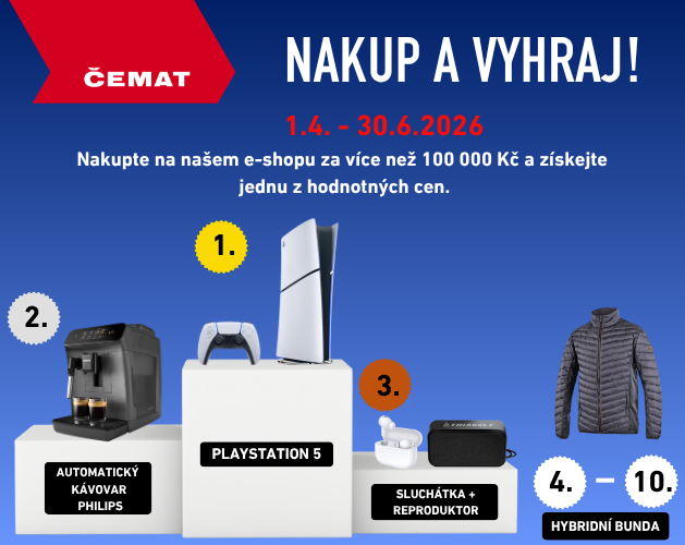 Když mezi 01.04. - 30.06.2026 nakoupíte jakékoli zboží v celkové hodnotě nad 100 000Kč na našem ČEMAT eshopu, máte šanci vyhrát hodnotné ceny.